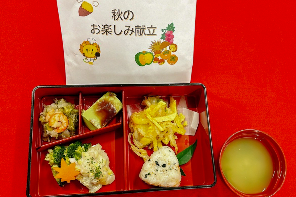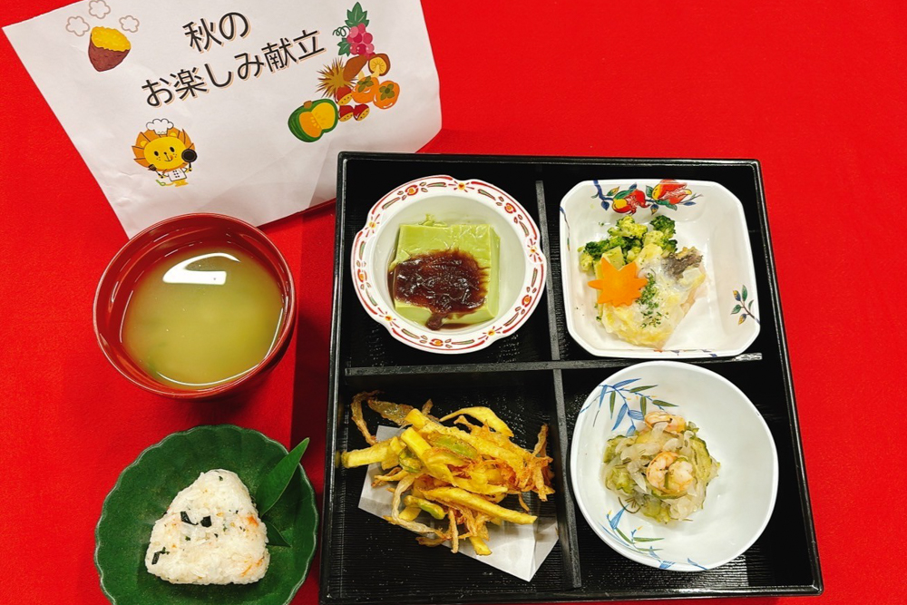 11月19日の昼食にて、行事食「秋のお楽しみ献立」を実施いたしました。 入所・通所サービスを利用中の皆さまに「秋を感じてもらいたい」と提供いたしました。 ご紹介いたします。 |