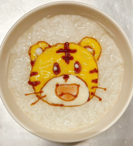 お粥を召し上がる方には、見た目も楽しい「飾り粥」をご用意しました。多くの方から「飾り粥がかわいい」とご好評いただきました。