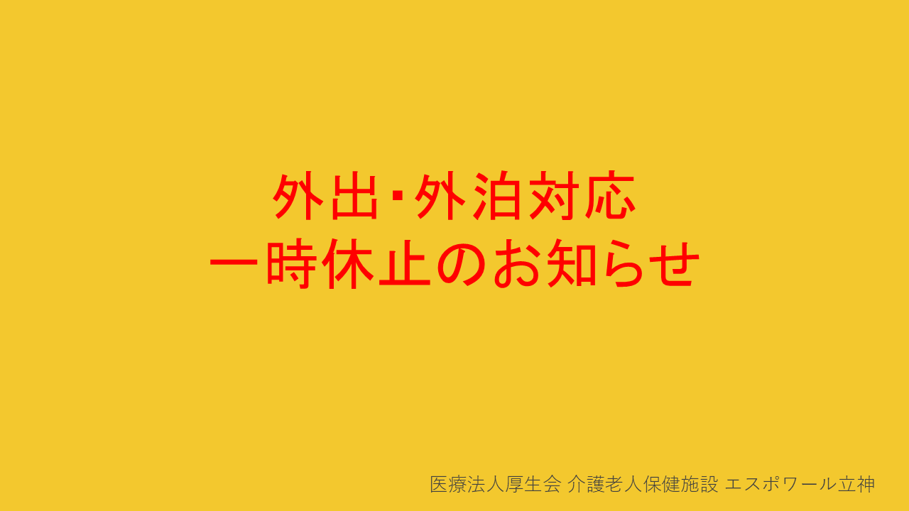 現在、感染症の流行に伴い、利用者様の安全を最優先に考慮し、外出および外泊の対応を当面の間休止させていただくこととなりました。