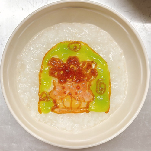 ゼラチン粥を召し上がる方には、「2026」の文字と門松をあしらった飾り粥を提供しました。
